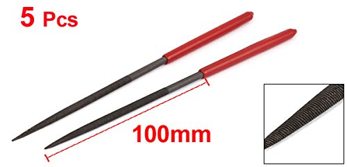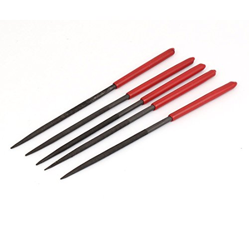 uxcell 円形ヤスリ 丸型ヤスリ レッドプラスチックハンドル ハードウェアツール 4mm x 160mm 5本入り