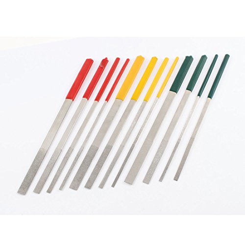 uxcell ニードルヤスリ ラバーハンドル ダイヤモンドメッキ フラット 185mm長さ 12本入り