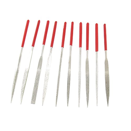 uxcell ダイヤモンドヤスリ 10本組 赤ツール 140mm 設定 ダイヤ モンドニードル ハンドル