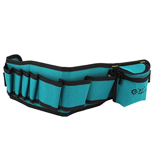 uxcell 腰袋 ハードウェアツールバッグ ツールウエストバッグ 道具袋 53X 13cm ティールブルー ブラック キャンバスストラップ プラスチック