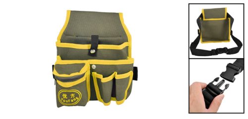 uxcell ツールバッグ 電気技術者用ショルダーバッグ アーミーグリーン イエロー 2区画に分け ナイロン キャンバス