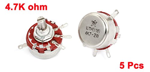 uxcell カーボンポテンショメータ 丸シャフト 4端子 ロータリー 4.7K ohm 2W WTH118 5個入り