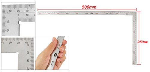 uxcell 曲尺 正方形ルーラー シルバートーン ステンレス製 250 x 500mm 90°