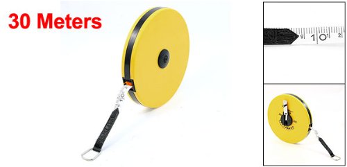 uxcell 黄色 プラスチック ケース 30m リトラクタブル ガラス繊維巻き尺