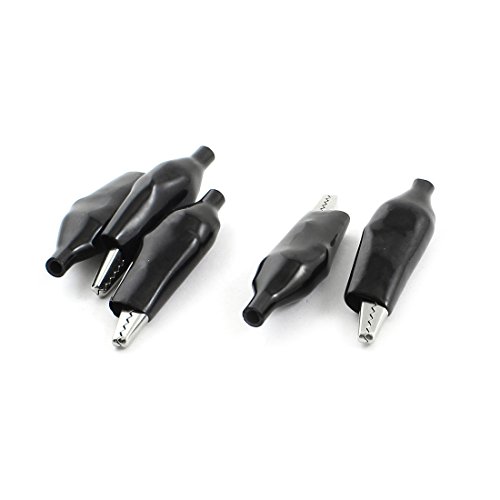 uxcell ワニ口クリップ ワニ口クリップクランプ 金属製 プローブテストクリップ シルバートーン ブラック 5個 55mm