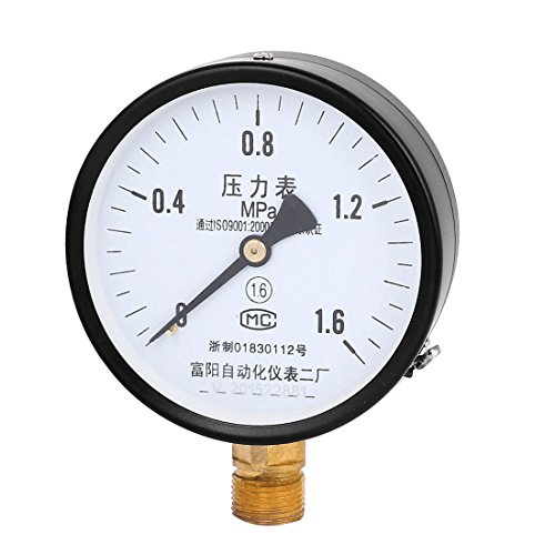 uxcell 圧力ゲージ 空気圧縮機 1/2BSP オス系 0-1.6Mpa 1.6 クラス