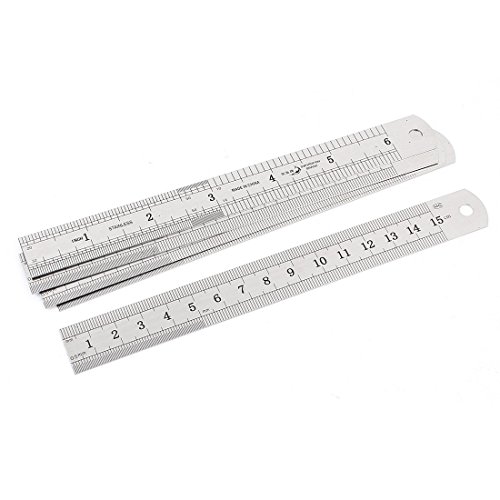 uxcell 直尺 ステンレス鋼メートル 15cm両面 クリニーク グレー 5本入り ストレート
