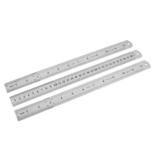 uxcell 直尺 ステンレススチール 30cmスケールのデュアルサイド 3個 ストレット