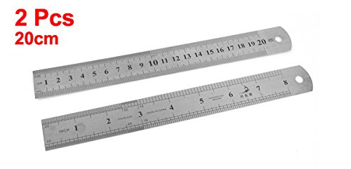 uxcell ストレート定規 ステンレス鋼製 グレー ブラック 2サイド 20cm 測量ツール 2個入り