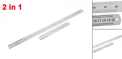 uxcell ストレートルーラー ダブルサイド 学生 ストレート シルバートーン 2 in 1