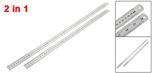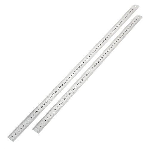 uxcell ストレート定規 50cmー60cm シルバートーン ブラック 金属素材 52.5x2.5cm