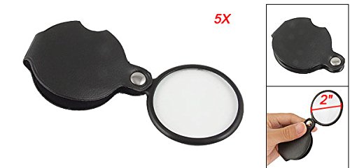 uxcell 拡大鏡 拡大率5倍 宝石鑑定 ジュエリールーペ レンズ プラスチック フェイクレザー 円形拡大鏡 簡単にキャリー ブラック 1個入り