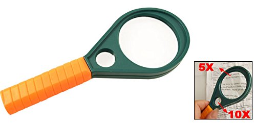 uxcell 拡大鏡 ルーペ 10X 5X オレンジ&グリーン ダブルグラス