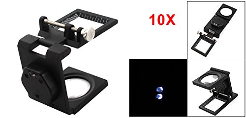 uxcell 拡大鏡 折りたたみスケールルーペ LED9005A 10X倍率 金属 ガラス