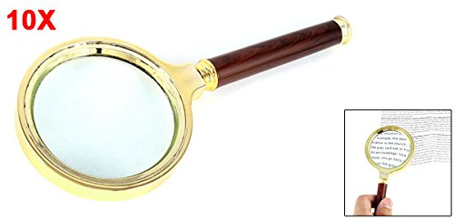 uxcell 拡大鏡 金属 ガラス 拡大レンズ 10X 分離できる ハンドル 70mmの直径 金トーン