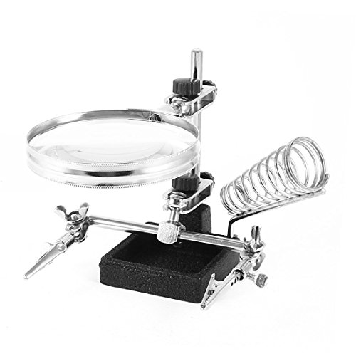 uxcell はんだこてホルダー拡大鏡 金属素材 ブラック シルバートーン 6.7 X 6.3 X 13cm