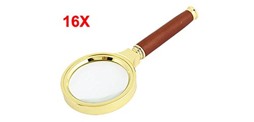 uxcell 拡大鏡 16倍 金属 ローズウッド 光学レンズ 7 x 1.2 cm ゴールドトーン ブラウン クリア