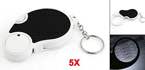 uxcell ブラック ホワイト ハウジング キーホルダーデザイン LED照明付き 5倍 拡大鏡