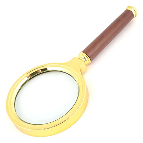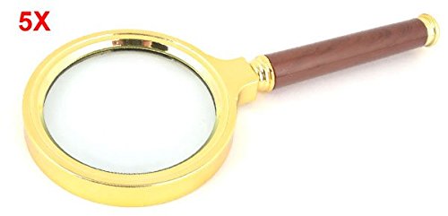 uxcell 70mm径 5X 光学レンズ プラスチック製のハンドル ゴールド 拡大鏡