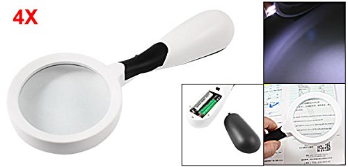 uxcell 拡大鏡 マグニファイア グラス ブラック LEDライト 60mm直径レンズ ホワイト