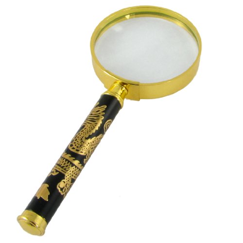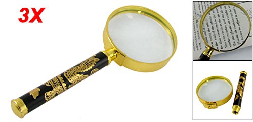 uxcell 拡大鏡 マグニファイアー メタル製ハンドル グラス ブラック ゴールドトーン 3X