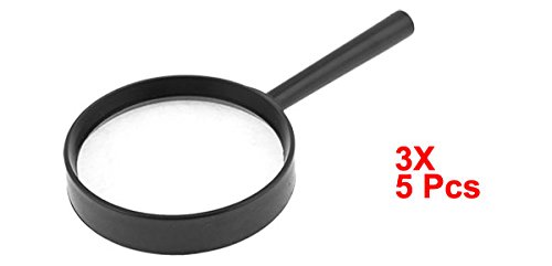 uxcell 拡大鏡 マグニファイアー プラスチック製ハンドル ブラック 5個入 75mm直径レンズ