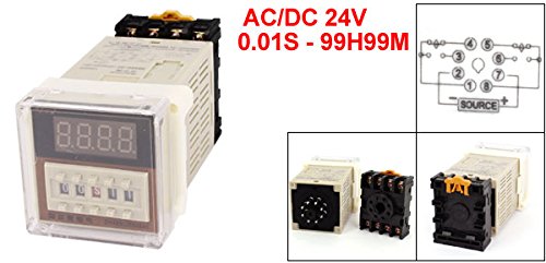 uxcell タイマーリレー カウントダウンリレー 液晶パネルマウントカウントダウンリレー DH48S-2Z AC/DC 24V 8P ベース付き 0.01S-99H99M