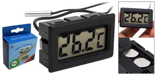 uxcell デジタル温度計 ミニLCD冷蔵庫 ブラック ~105cm LR44ボタン電池