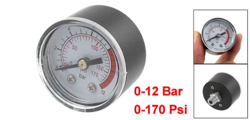 uxcell コンプレッサーバロメーター エア圧力計 ブラックシェル 0-12BAR 0-170PSI