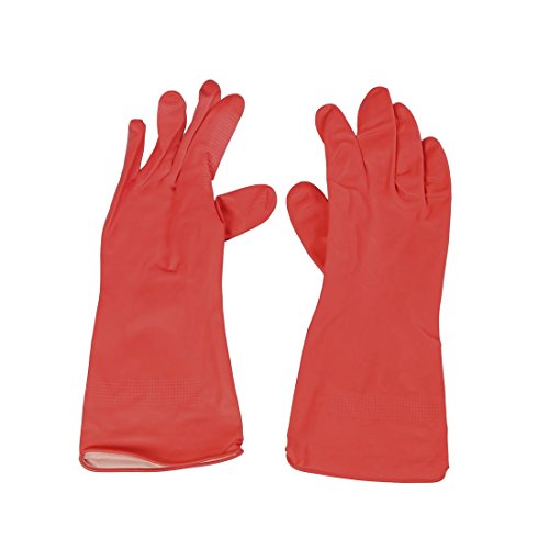 uxcell 家庭用 ラテックス手袋 クリーニング 洗濯物 レッド ペア