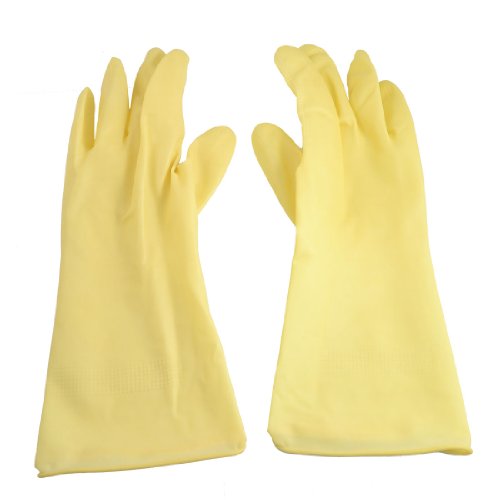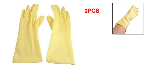 uxcell クリーンラテックス手袋 手袋 ユニセックス ノンスリップ 防食 イエロー ペア入