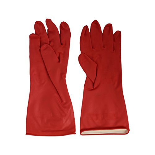 uxcell ゴムコート手袋 産業 耐油性 防水 ハンド プロテクター レッド ペア入り