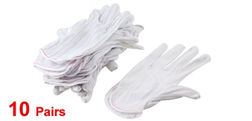 uxcell 手袋 ノンスリップ手袋 フル指 ストリップ ミニドット ホワイト 10ペア入