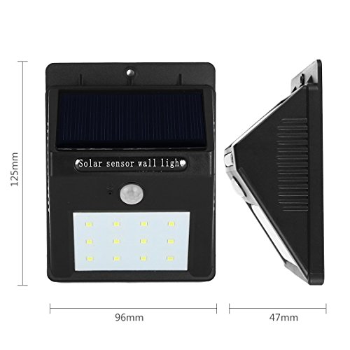 - LED Sensor Light with a large sensor - sensing range of 10 feet with a 120 degree sensing angle.IP64 waterproof and heatproof, solar powered lights, suitable for most kinds of weathers