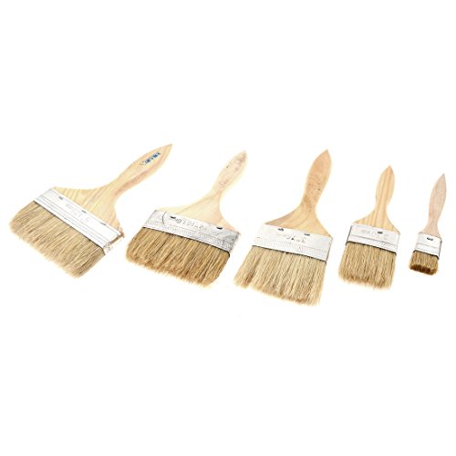 uxcell ペイントブラシ 金属 剛毛 ウッド シルバートーン ウッドカラー 5個入り