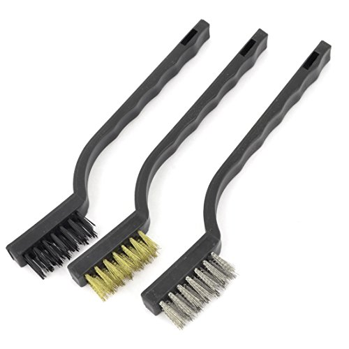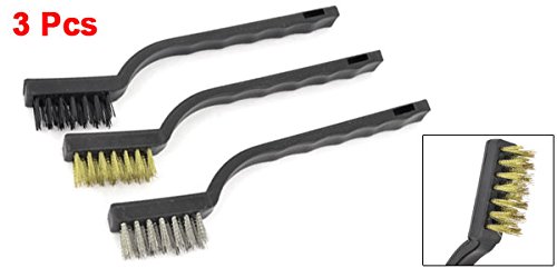 uxcell ワイヤー ブラシ ツール ブラック グレーン ゴールド トーン ノンスリップ プラスチック ハンドル 3本いり