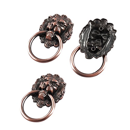 uxcell プルハンドル 家庭用品 金属製 ライオンヘッド デザイン ビンテージ のスタイル 化粧台 プルハンドル 90mmの長さ 3個入り