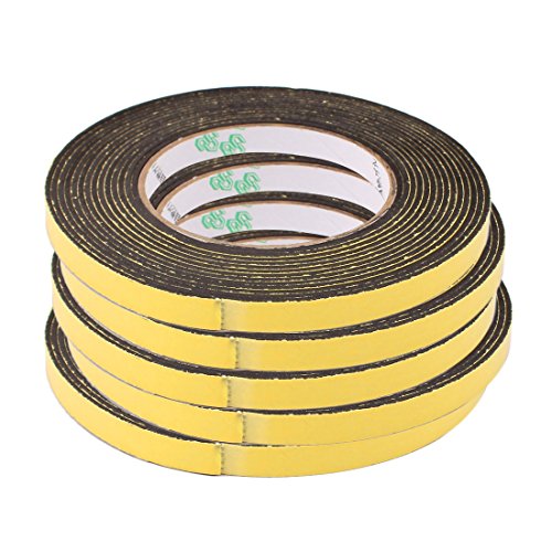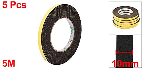 uxcell スポンジテープ フォームテープ 自己接着テープ 片面 耐震性 5m長さ 10mm幅 2mm厚さ ブラック イエロー 5個入り