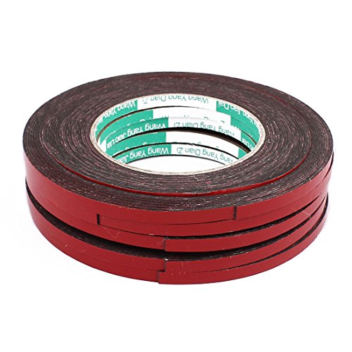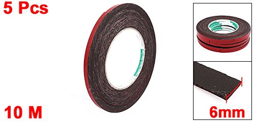 uxcell フォーム テープ 自己粘着 耐衝撃性 10m長さ 6mm幅 1mm厚さ レッド 5個入り
