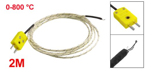 uxcell 熱電対 断熱シールド ホワイトイエロー SMPW-K-Mコネクタ 2フラットピンプラグ 0-800摂氏度 2M長さ