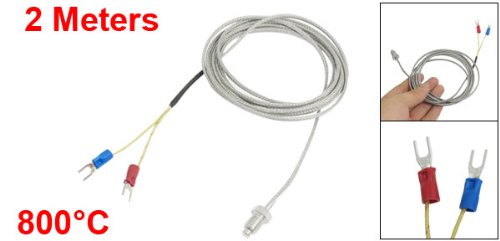 uxcell 熱電対 2M 8mm 0-500C シルバートーン メタル Eタイプ 4.5mm