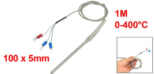 uxcell 熱電対 プラスチック製シルバートーン 100mm x 5mm PT100 タイプ 1M長さ