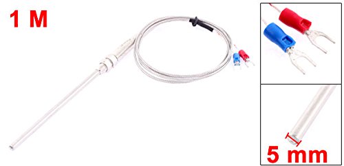 uxcell 熱電対 Kタイプ ガラス繊維 0-400度 全長 1m 温度制御 シルバートーン 1個入り