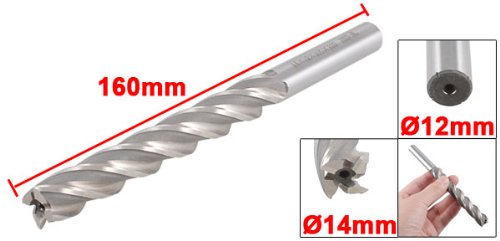 ストレートシャンク、4フルート、HSSとアルミニウム材料、14mmの加工径、12mmのシャンク径、160mmの全長のデザインなどの特徴がしています。