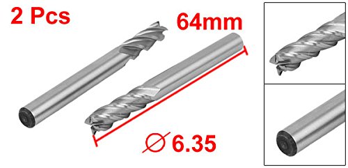 uxcell エンドミルビット カッター HSS-AL 4スパイラルフルート ストレートシャンク 切削直径6.35mm 2本入り
