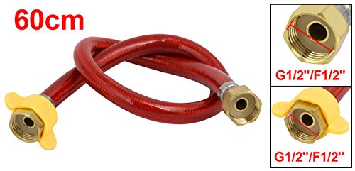 uxcell 蛇口コネクタ 編組ステンレス鋼 ダブルロック トイレ用品コネクタ/ライン 60cm全長 レッド