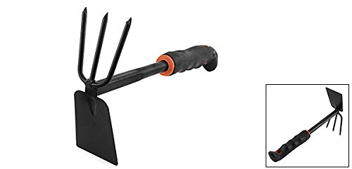 uxcell メタルヘッドガーデニングツール 鍬ハンドル ゴム3歯 ブラックレーキ