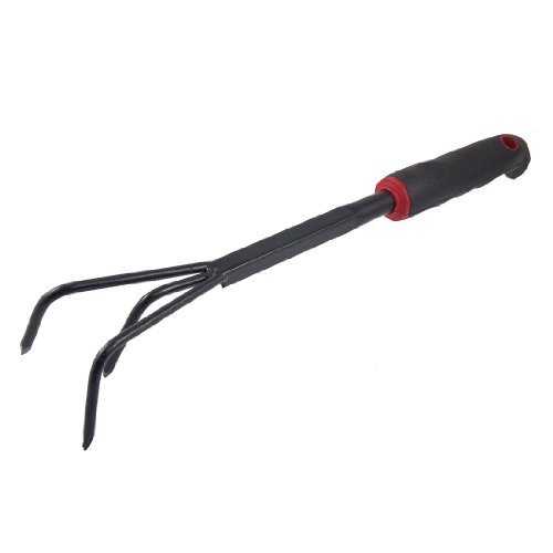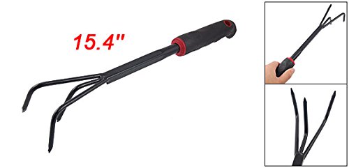 uxcell 庭園熊手 ハンド 開催 ゴムハンドル 3本 耕運機 全長39.2cm 庭園芝生用具