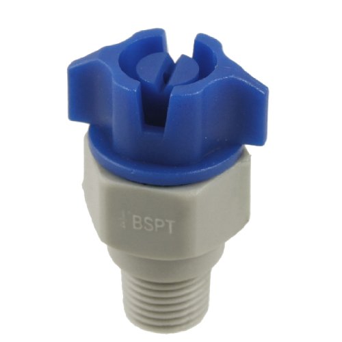 グレー半球形の入口と"V"ノッチ付きコンセントと青いプラスチックフラットファンスプレーノズルです。