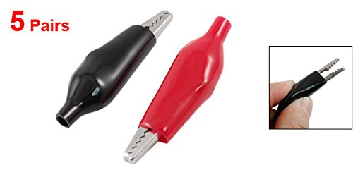 uxcell 電子鰐口クリップ 10個入り 絶縁 電子 ブラック レッド 55mmテストリード 低電圧回路